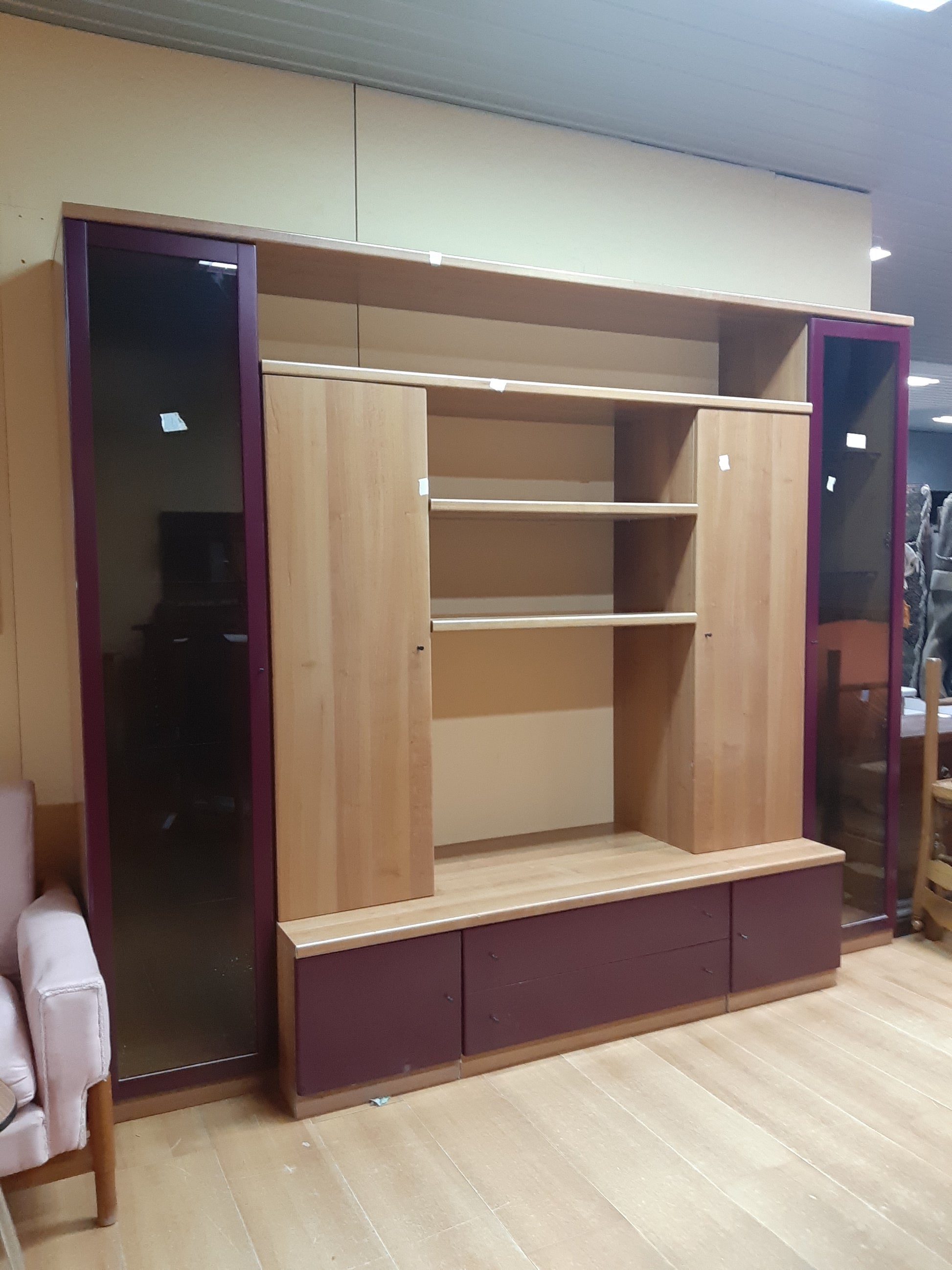 Parete Attrezzata Noce Chiaro E Finiture Melenzana